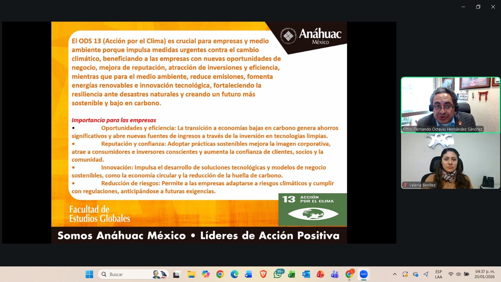 Asimismo, se exploró la relación del ODS 13 con otros objetivos clave, como el ODS 7 (energía asequible y no contaminante), ODS 12 (producción y consumo responsables) y ODS 11 (ciudades y comunidades sostenibles), mostrando cómo las decisiones empresariales pueden contribuir de forma integral a distintos frentes del desarrollo sostenible.